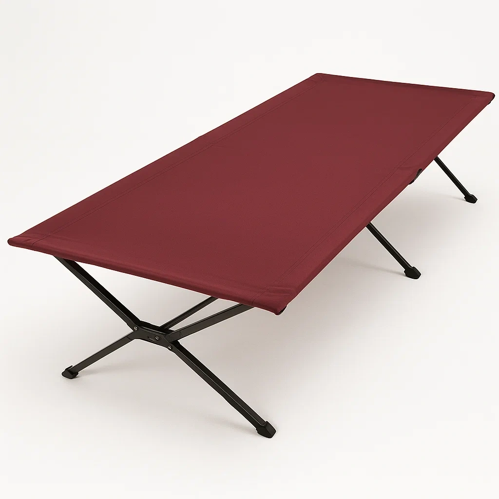 Lit de camping pliant en acier et polyester bordeaux 190x80 cm