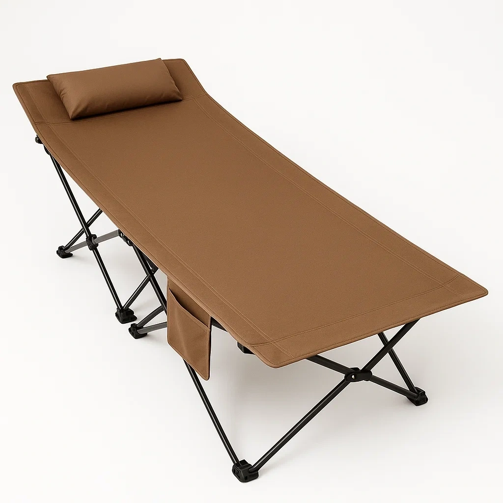 Lit de camping pliable en tissu polyester marron